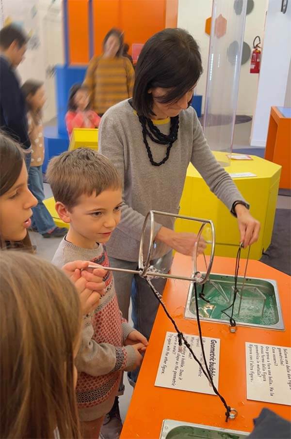 Qui dove si scoprono le molecole del dna e le molecole dell’acqua.  È la zona che i bambini ameranno di più, ci sono bolle giganti e bolle di tutte le forme.