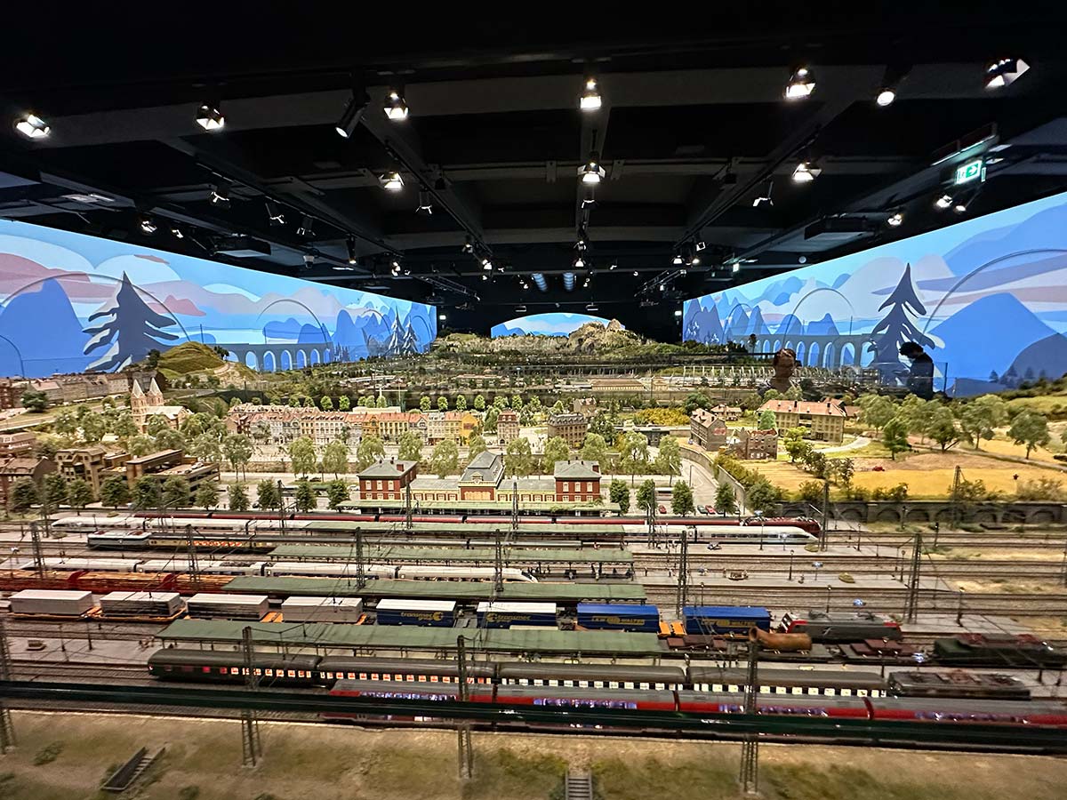 - Plastico ferroviario: Un’opera di 280 mq che riproduce scenari in scala 1:87, ispirati a paesaggi come le Dolomiti, l’Isola d’Elba e architetture europee. Oltre 70 treni sfrecciano su quasi un chilometro di binari, con 121 semafori e 147 scambi.