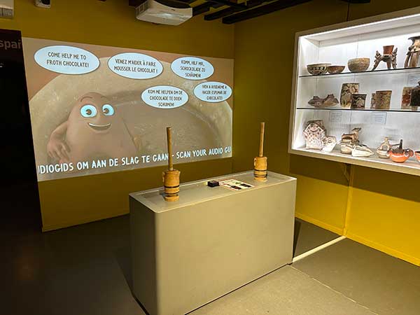 La visita, adatta ai bambini, è impostata sulla storia e i viaggi del cioccolato. Il museo ricostruisce la diffusione del cioccolato nel tempo e nello spazio, dalle Americhe all’Europa.  I racconti e i pannelli illustrativi son interessantissimi, una dolce lezione di storia, ovviamente per apprezzarli il bambino deve saper leggere fluentemente. Ma anche se non sa leggere c’è l’audioguida in italiano: una barretta di cioccolata che si deve poggiare  su ogni postazione per ascoltare la storia. E questo aiuta tantissimo anche i piccolini…. qui tutto presentato come un gioco.