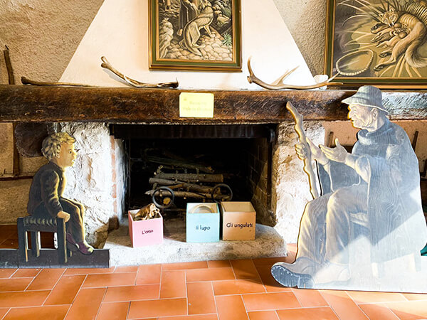 Arriviamo alle 16 e scopriamo che sta partendo una visita guidata. Siamo super fortunati, perché il museo è bello, ricco di pannelli esplicativi molto chiari, ma la visita guidata è più interessante e coinvolgente. Luigi, la nostra guida, ci racconta piccoli episodi in cui lui stesso si è trovato a contatto con i lupi. La stanchezza dei bambini è scomparsa. Son ovigili, curiosi, e attenti.
