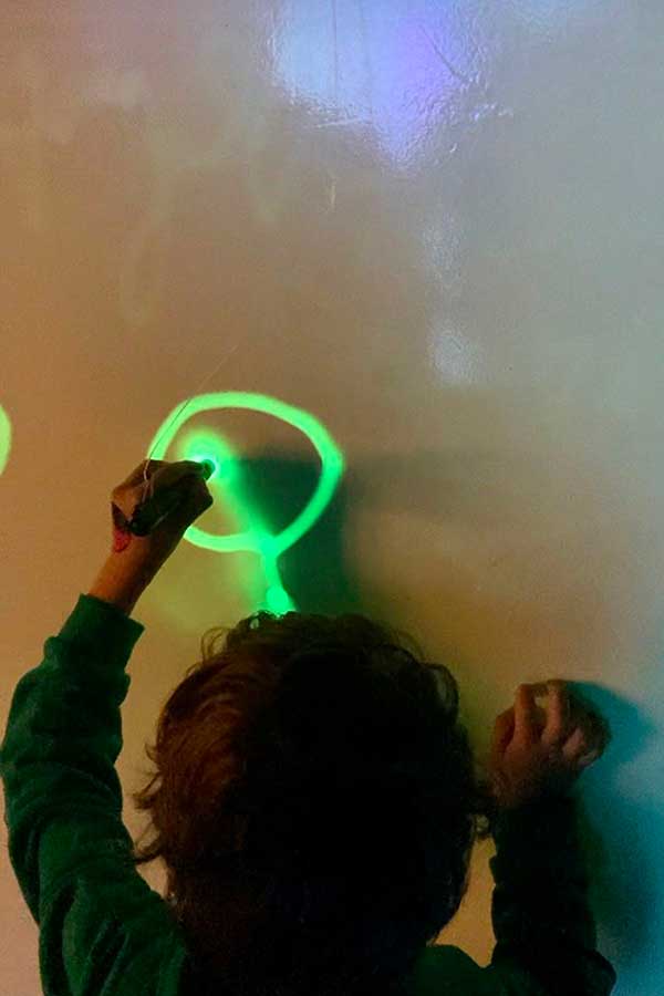 I bambini, ma anche i grandi, possono provare a disegnare con la luce o scattare una fotografia alla propria ombra; si possono osservare ritratti di persone che sembrano seguirti e uscire dalla cornice; si può vedere l’astronave di Star Wars fluttuare su un vinile!
