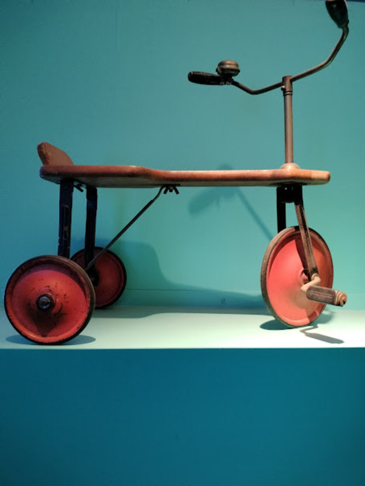 La sala successiva, totalmente azzurra, raccoglie i giochi dinamici che hanno fatto pedalare i “bambini di una volta” come tricicli, biciclette ed auto a pedali, aerei e cavalli. Le auto a pedali per bambini fanno la loro comparsa agli inizi del Novecento e sono discendenti dirette dell’automobile degli adulti. Questa è forse la sala più spettacolare anche per l’allestimento: alzate gli occhi e vedrete volare sopra le vostre teste un aereo!