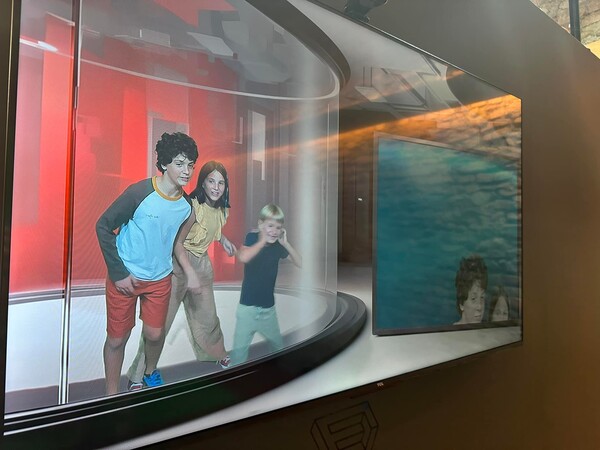 Dura pochi minuti, ma è molto realistica.   Potete scegliere tra due esperienze virtuali: camminare su una trave sospesa tra due grattacieli oppure provare l’emozione di sfrecciare  sulle montagne russe, nel primo caso, indossato il visore, dovete premere il bottone di un ascensore e vi ritrovate all’ultimo piano di un immaginario grattacielo, qui dovrete realmente camminare su una trave ( appoggiata però al pavimento) e poi…cadere giù nel vuoto. (Lo abbiamo provato e siamo caduti davvero!). La seconda esperienza invece si fa da seduti, con il visore e due manipoli.