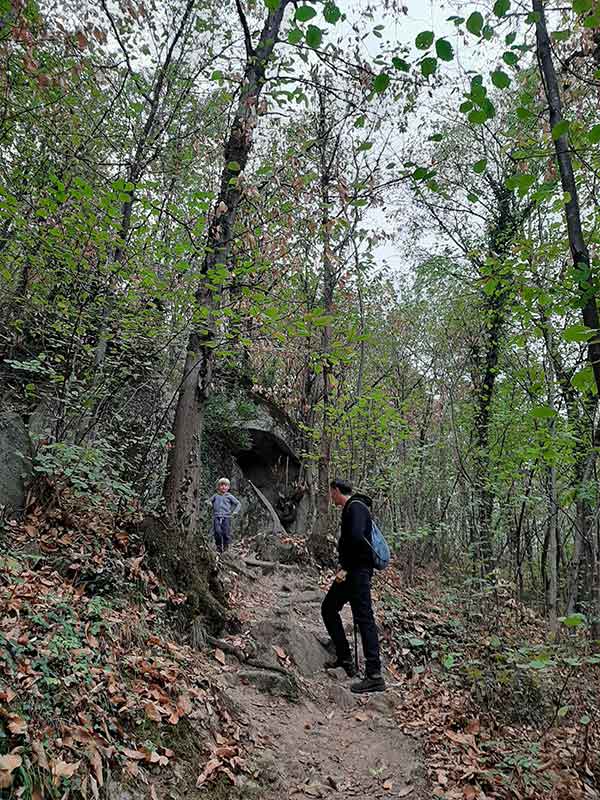 Abbiamo cominciato la nostra passeggiata all’area attrezzata della Pradera (nella quale è possibile sostare per un picnic) in Strada Antica di Francia e da lì, tra aneddoti, storia e curiosità sul luogo, siamo saliti al primo luogo di interesse storico: il Riparo Rumiano, che prende il nome da suo scopritore, una sorta di grotta naturale formatasi dall’incastro di massi erratici dentro la quale si ipotizza che venissero ricoverate le bestie e attorno alla quale furono ritrovatim moltissimi oggetti che testimoniano l’esistenza di una comunità del IV millennio circa a.C.