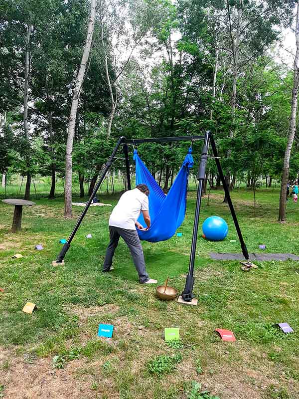 38000 mq di prato, ombreggiato per chi vuole riposare e fare picnic, al sole con sdraio per chi ama la tintarella e docce per rinfrescarsi, un’area attrezzata con griglia per chi è amante del barbecue, una pista da ballo per chi ama lo swing e gli altri balli al palchetto, un’amaca tra i pioppi sula quale provare trattamenti shiatsu mentre i bambini vengono intrattenuti dagli animatori nella “Contea delle ranocchie” a loro dedicata (laboratori artistici, musicali e manualI), un laghetto artificiale per la pesca di trote e carpe.