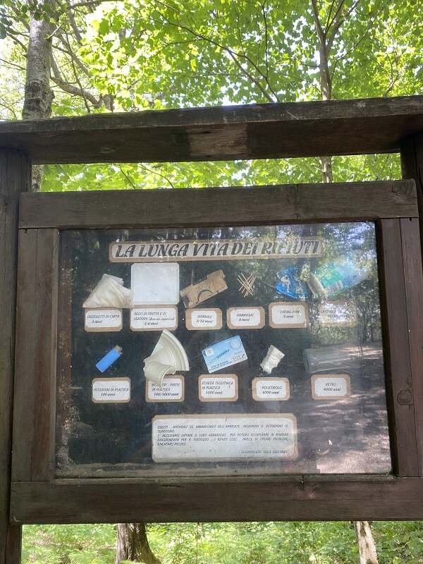 Si vede che c’è una grande attenzione alla raccolta differenziata : all’ingresso trovate i bidoni suddivisi in base alla tipologia dei rifiuti e vicino all’area picnic troverete una vetrinetta con dentro tutti i tipo di rifiuti catalogati in base agli anni necessari a smaltire quel rifiuto in natura. Insomma, c’è un continuo richiamare l’attenzione di chi passeggia nell’oasi al rispetto della natura e dell’ambiente.
