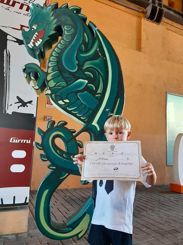 Li farete felici portandoli in motoscafo a caccia di idre e uova di drago nascosti tra la vegetazione e le case disabitate a bordo lago o facendoli correre al contrario lungo il Nigoglia, l’unico torrente che dalla pianura va verso la montagna, per poi concludere la giornata con una vera e propria masterclass di dragologia, una prova di audacia e un diploma.