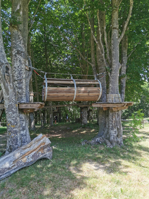 Il primo è quello verde, medio-facile, obbligatorio anche per chi vuole fare l’altro. Si trova a 2 mt da terra con 6 attività e teleferica finale. Quello blu è di difficoltà medio-alta, a 6 metri d’altezza, con 13 piattaforme una teleferica.