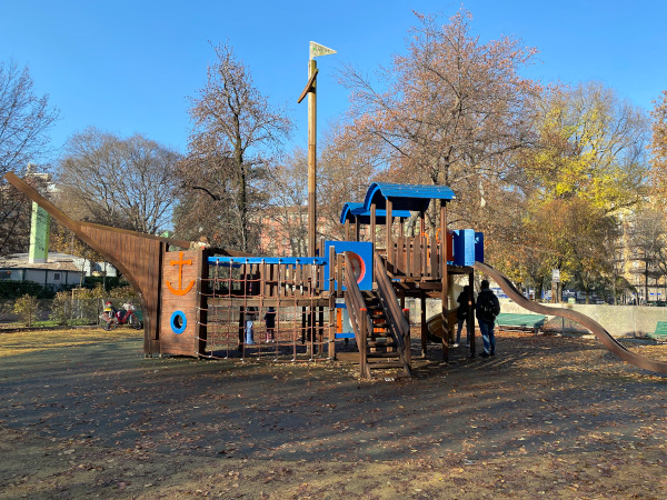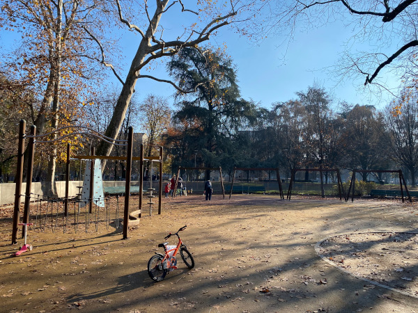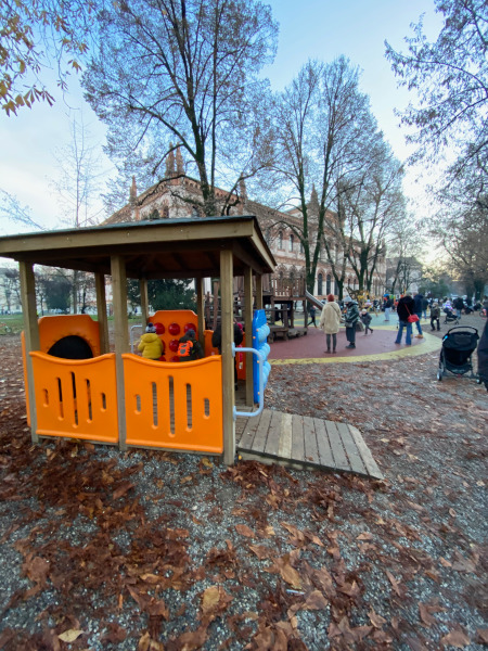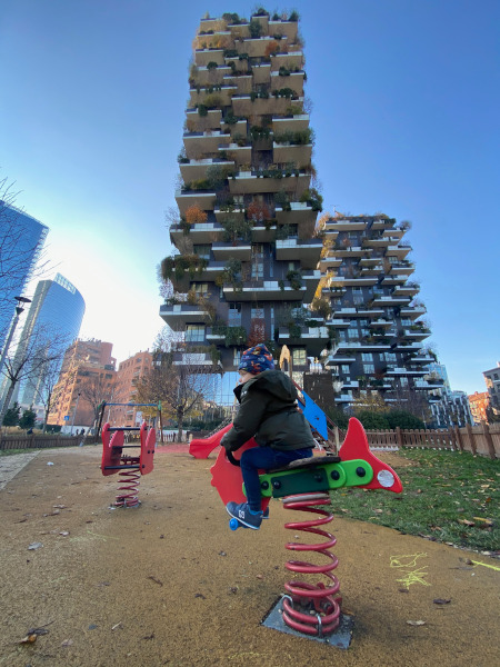 Nei pressi del bosco verticale, ai piedi dei due famosi grattacieli, si trova un piccolo parco, attrezzato con una graziosa area giochi per bambini.