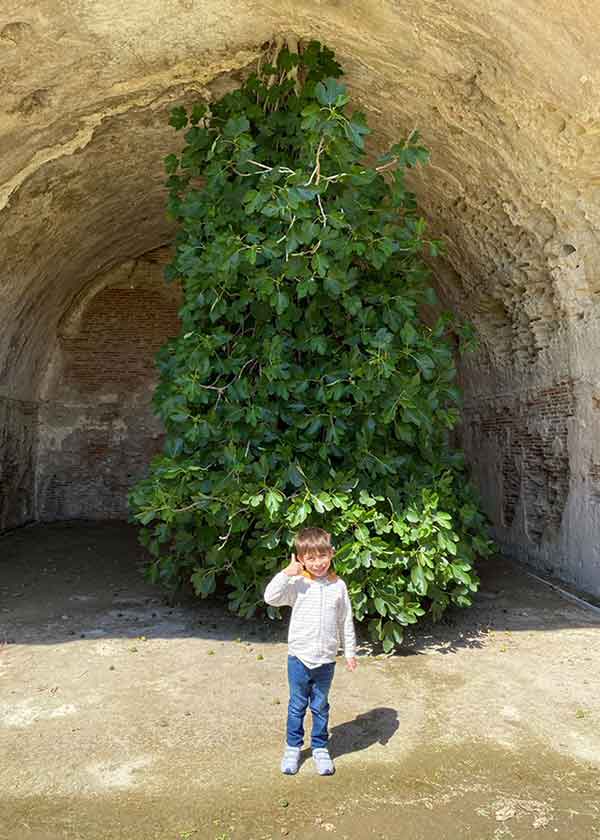 . Si tratta di un fico selvatico, una pianta che resiste a lunghi periodi di siccità, che anziché crescere verso l’alto, si è fatto spazio dal soffitto della volta per crescere letteralmente al contrario!
