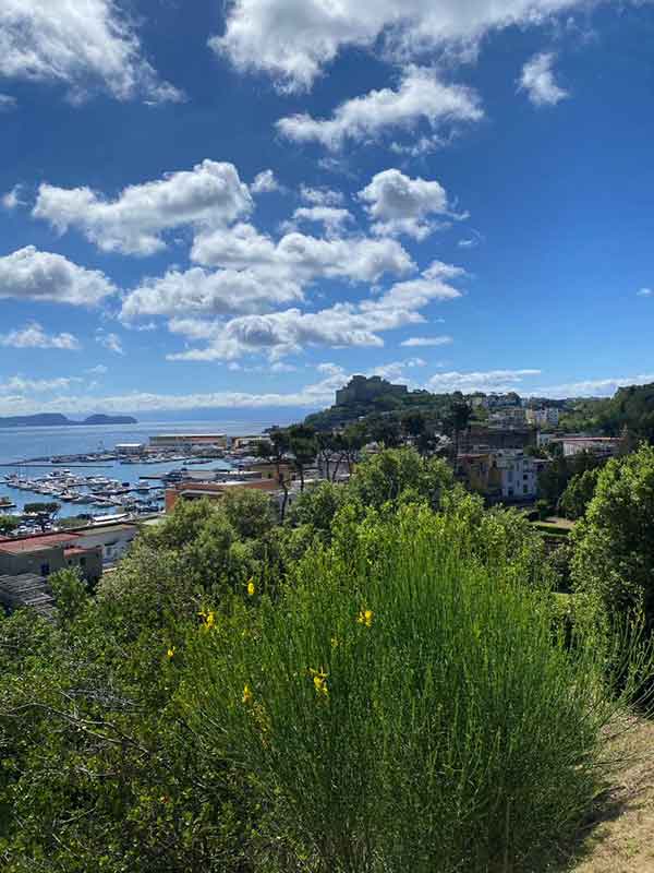 Ciao!, dal parco archeologico si può scendere a piedi fino al porto di baia, è una piacevole passeggiata tra i vicoletti