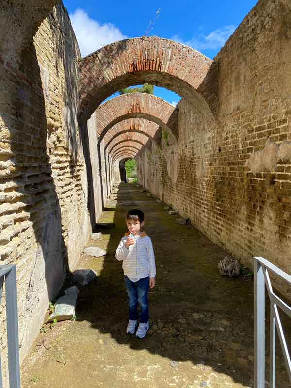 La nostra passeggiata continua a piedi verso il porto di Baia e anche semplicemente camminando ci rendiamo conto di quanto questa zona sia ricca di storia. Poco prima di arrivare al porto, al termine della scalinata che scende dal parco archeologico, troviamo il Tempio di Diana , visibile dalla piazzetta antistante la cupola crollata per metà.