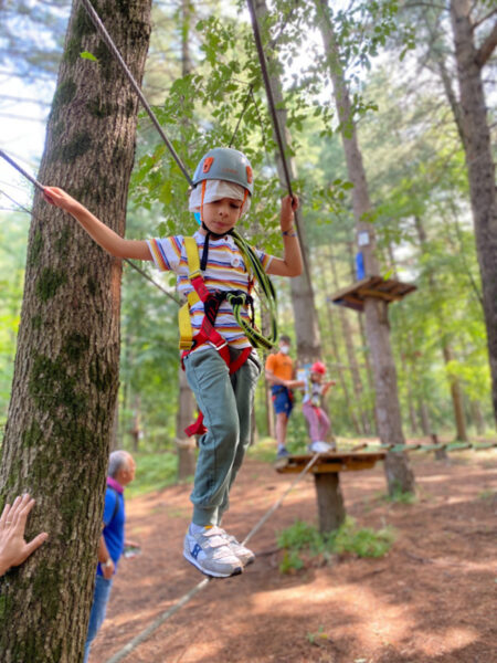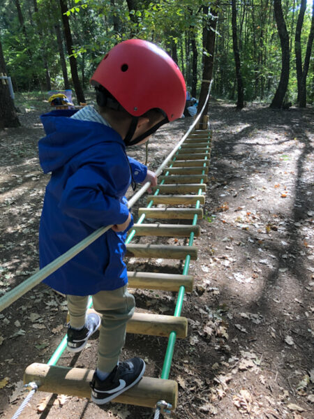 Dopo aver provato il percorso baby, siamo tornati un paio di anni dopo per provare quello giallo. Manuel era un pò spaventato all’inizio ma, grazie agli operatori del Parco che seguono attentamente ogni bambino, è riuscito a completare tutto il percorso e a lanciarsi anche con la zipline! Io, per dare coraggio a lui, ho fatto il percorso verde e viola e mi sono divertita tantissimo però…. lo ammetto… ero terrorizzata dall’altezza!