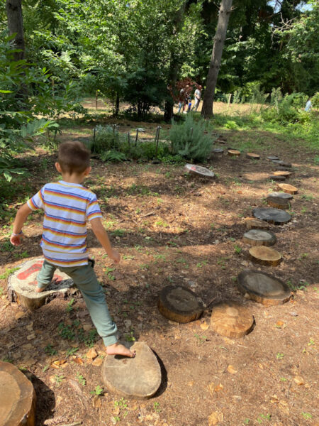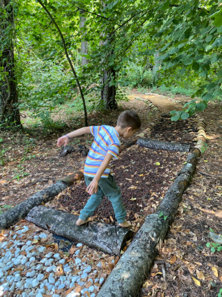 Nella nostra seconda visita al Parco, abbiamo provato anche il Percorso sensoriale a piedi nudi, conosciuto anche come Barefooting“. Oltre a donare un’estrema sensazione di libertà e a migliorare la circolazione del sangue, la postura e l’equilibrio, nei bambini questa pratica serve per stimolare i sensi e a riconoscere i diversi materiali presenti in natura.