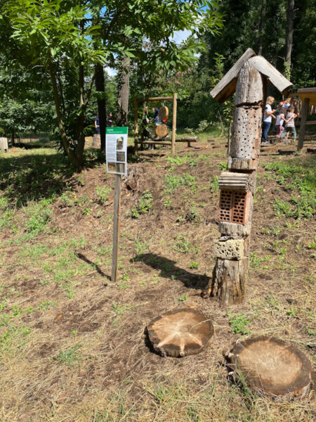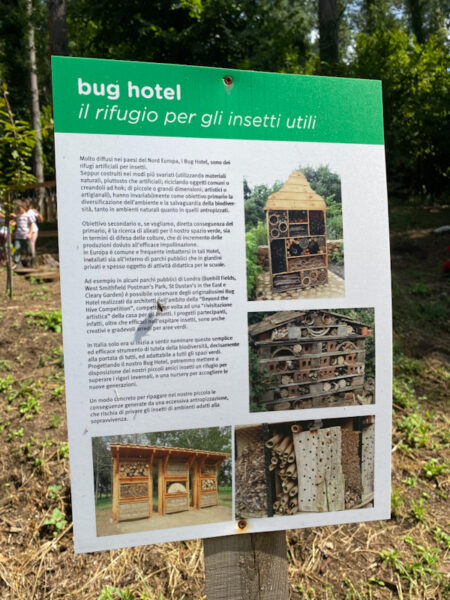Il percorso termina con il  Bug Hotel un rifugio per gli insetti creato con materiale di riciclo, il cui obiettivo è favorire la biodiversità, dando ospitalità a diverse specie di insetti, che trovano nel bug hotel un luogo sicuro per nascondersi.