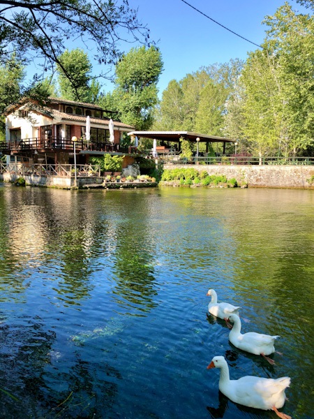 Attraversato dal Rio Grassano, i colori delle sue acque sembrano quelli di una cartolina: dal turchese al verde smeraldo, sembra quasi di potercisi specchiare dentro. In queste gelide e limpidissime acque, vivono anatre, oche e lontre (noi le abbiamo viste sbucare dalle loro tane sotto alla terrazza del ristorante!), mentre le sponde del fiume sono ricche di tigli, salici, pioppi. Le acque del fiume sono ricche di piante igrofile che si vedono sul fondo, per quanto è trasparente l’acqua e sono proprio queste piante a dare tutte le meravigliose sfumature di verde e azzurro. Sembra una foresta acquatica!