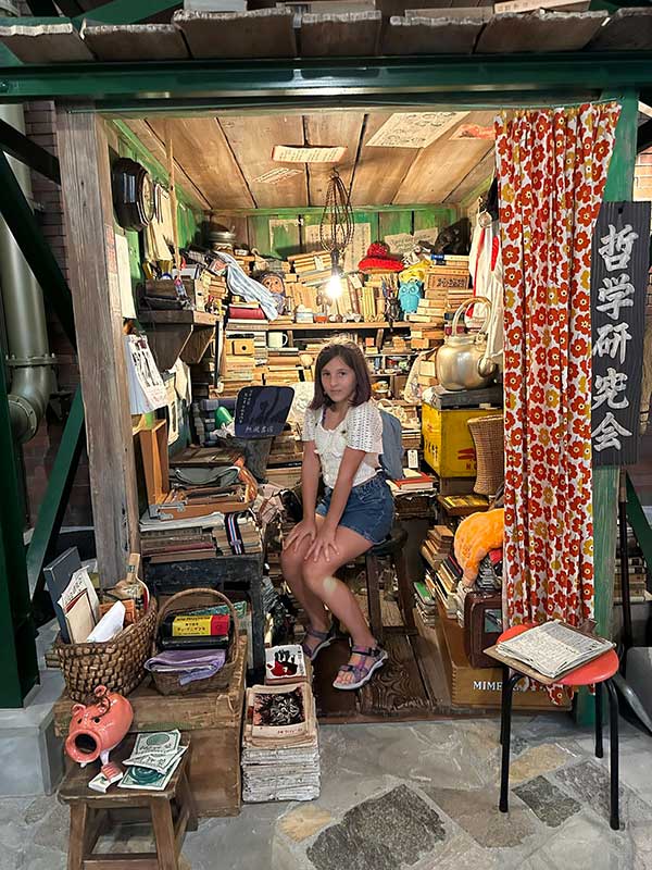 Nello shop trovate un po’ di tutto, dai pupazzi di Totoro a 50 euro, a borse di tela a 20 euro a quadernini a 10 euro a spillette a sei euro. All’ingresso vi danno un cestino e la tentazione di riempirlo tutto è davvero grande. Per le bimbe c’è anche il vestito di Kiki o il gatto nella gabbietta. È davvero il sogno di tutti gli appassionati del capolavori di Hayao Miyazaki, un luogo che ti rimane nel cuore.