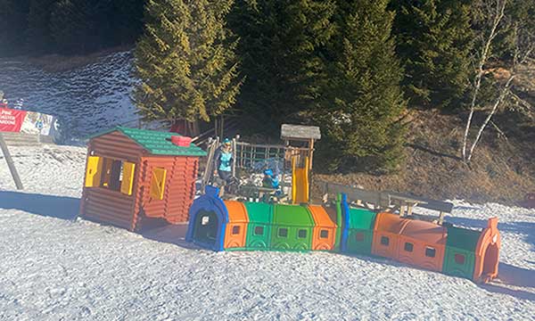 Si può raggiungere senza prendere gli impianti di risalita, quindi comodissimo anche per chi ha bimbi in passeggino. Un’area giochi con diverse piste sia per sfidarsi con i bob, sia per un battesimo degli sci.
