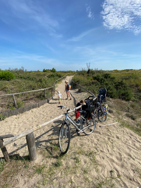 Ci sono tre sentieri di lunghezza differente (600-1.650-2.850 mt.), in parte realizzati su palafitte. Ci si inoltra in un percorso tra la pineta, dune di sabbia e piccoli stagni (ad un certo punto abbiamo dovuto lasciare le bici perché era impossibile proseguire per la sabbia), intervallato da passerelle con punti di osservazione e tabelle descrittive che spiegano le varie biodiversità e permettono di capire come cambino gli ambienti e come si modifichi la vegetazione avvicinandosi al mare.