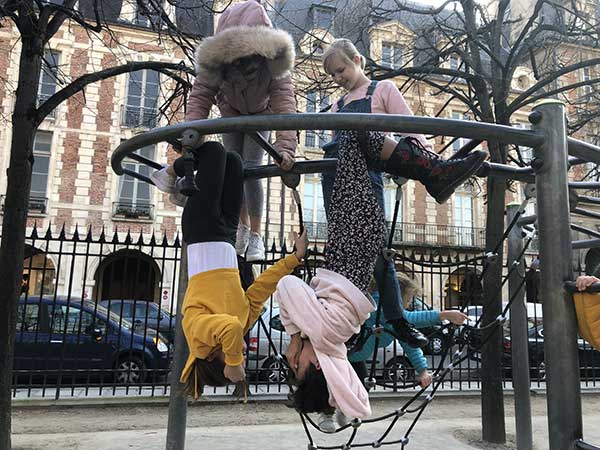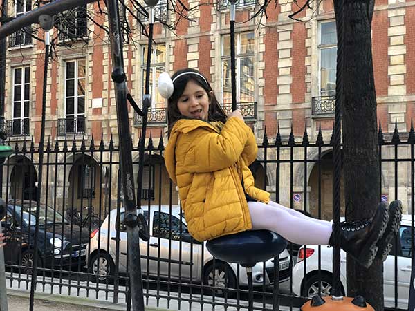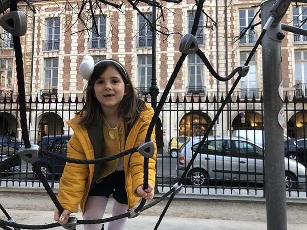 Noi avevamo casa nel meraviglioso quartiere de Le Marais. Quindi, dopo la visita al Museo di Picasso e a una passeggiata tra i negozi (meravigliosi in questo quartiere) il nostro primo parco giochi di Parigi è stato il playground nella spettacolare Place des Vosges, la piazza più antica di Parigi.