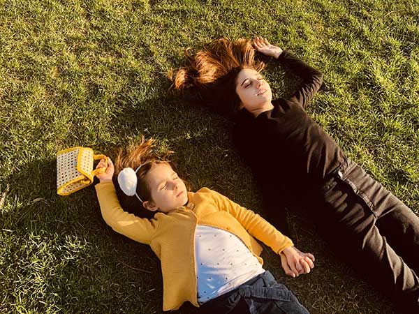 Io e Lucia (quello a Parigi è stato un viaggio solo donne), ci siamo stese sul prato a prendere il sole e le bambine sono andate a giocare tra altalene, arrampicate, corde, poi stanche, anche loro si sono stese sul prato a giocare.