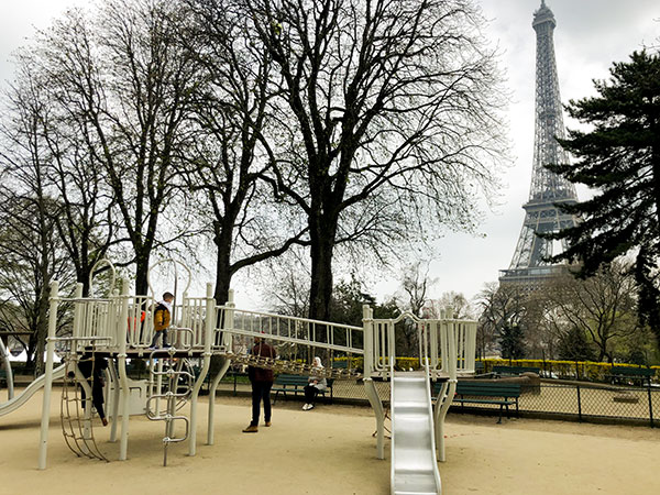 Il terzo giorno ci siamo svegliate presto e abbiamo portato le bambine a vedere la Tour Eiffel. Non vi dico l’emozione e i gridolini. E a pochi passi da grande gigante di metallo c’è uno dei parchi gioco, secondo me, dei più bei parchi giochi a Parigi: un parco giochi con vista Tour Eiffel non è male.