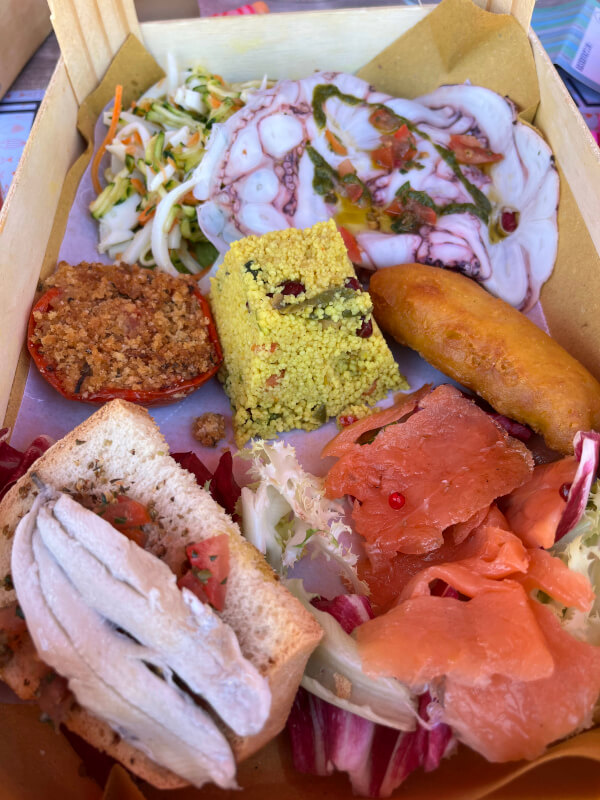 Se vuoi fare un pranzo o una cena veloce, noi siamo stati da Porto’s sul lungomare, locale carino, si ordina al banco e poi ci si accomoda in tavoli dentro e fuori. C’è una vasta scelta di pizze al taglio e piadine e cassoni, noi abbiamo provato la pizza è piaciuta molto, oltre alla Rossini abbiamo assaggiato anche la focaccia bianca con la porchetta. Consiglio: d’estate è molto frequentato, evita gli orari di punta.