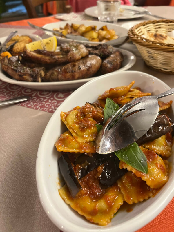 Oltre alla carne noi abbiamo scelto anche dei primi rigorosamente fatti in casa, per i bimbi tagliatelle al ragù e per me ravioli alle melanzane – ci sono infatti anche proposte senza carne.