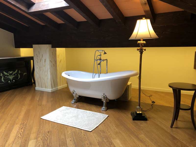 Bellissima la suite Liberty con vasca da bagno vintage e la camera nella torre con vista lago, entrambe nella Villa centrale.