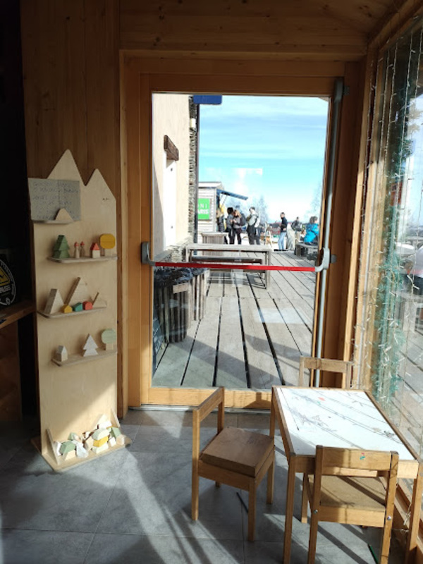 Per chi volesse fare solo una breve pausa, al piano terra, davanti ai giochi per i bambini sulla neve, si trovano tavoli all’aperto e uno snack bar con panini e bevande.