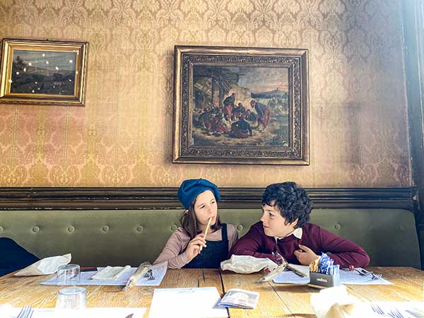 I bambini sono anche andati nella sala studio dove ci sono le amache e gli è piaciuta moltissimo. Ovviamente erano un po’ intimoriti dal silenzio generali, ma si sono dati un tono… a modo loro… Enrico, mio figlio, a un certo punto si è addormentato, visto il calore della stanza e i bisbigli ai tavoli…piccolo dettaglio per ribadire che il Circolo dei Lettori è un posto dove non c’è un menù bimbi, dove non si può correre e giocare…ma è stato un brunch unici, abbiamo chiacchierato tanto, abbiamo, ovviamente parlato di libri, e abbiamo provato gusti nuovi. Personale gentilissimo e molto ben disposto verso i piccoli ospiti. A Erico e Giulia hanno regalato delle cartoline colorate e accontentato le loro “piccole” richieste”.