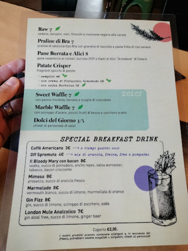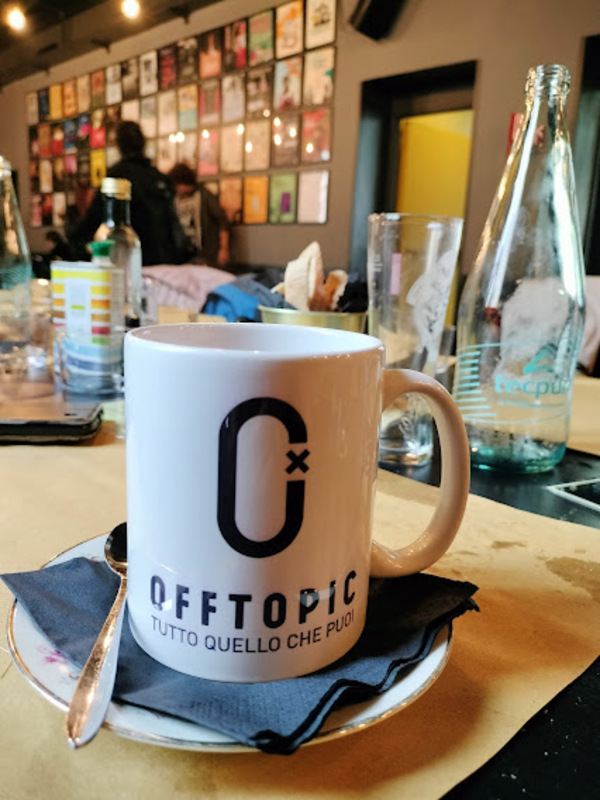 Il brunch di OFF TOPIC ci è piaciuto molto perché, oltre alla cura dei piatti, il servizio è stato attento alle esigenze dei più piccoli e lo spazio adeguato sia internamente che esternamente. Noi eravamo seduti all’interno perché piovigginava ma c’è un cortile ampio con edera sui muri e un grande murales dove ci si può accomodare nelle belle giornate e dove i bambini sono liberi di scorrazzare senza importunare troppo gli altri clienti. Insomma per noi, come direbbe Alessandro Borghese, voto DIESCI.