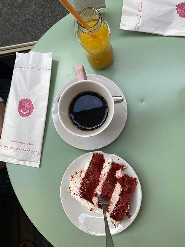 Noi forse abbiamo sbagliato l’ordine, perché abbiamo ordinato una Full English Breakfast e non era né eccezionale, né molto ricca: pane, bacon, una scodellina di fagioli e un uovo. Scones buoni, ma non tra i migliori. E ci hanno deluso anche i cupcake: non sono malvagi, ma diciamo che sono più belli a vedersi buoni. Sembravano molto  allettanti i pancake, che però non abbiamo provato. In due abbiamo speso 47 euro.