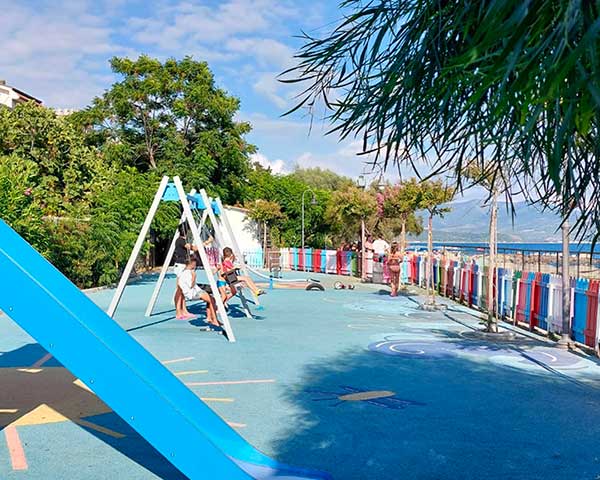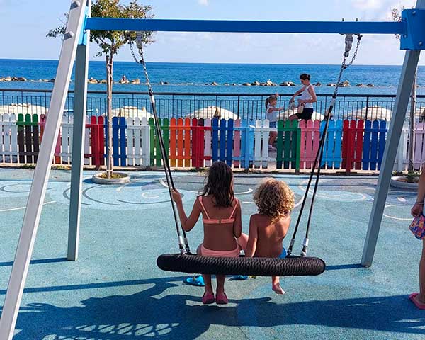Qui i bambini potranno divertirsi giocando spensieratamente mentre i genitori potranno godersi il panorama sorseggiando un cocktail o un caffè presso il piccolo bistrot Caretta, che ha allestito originali tavolini vista mare, all’ombra delle tamerici.