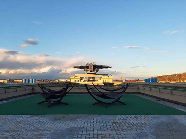 Torino dall’alto con passeggiata nel giardino pensile più grande d’Italia, sul tetto della Pinacoteca Agnelli, al Lingotto c’è un giardino con più di 40.000 piante di oltre 300 specie diverse. Piante piemontesi e mediterranee, distribuite anche secondo le variazioni di colore stagionali; un giardino realizzato sul tetto di quella che a inizi 900. L’architetto Benedetto Camerana ha trasformato l’anello di 1,1 km da una pista di collaudo per le auto in un giardino che vive in 28 grandi isole create con tecniche di nuova concezione che hanno drasticamente ridotto il consumo di acqua e di fertilizzanti, per un giardino moderno e sostenibile. E in questo giardino arte e natura si fondono, con un’esposizione permanente e che continua ad arricchirsi di opere d’arte.