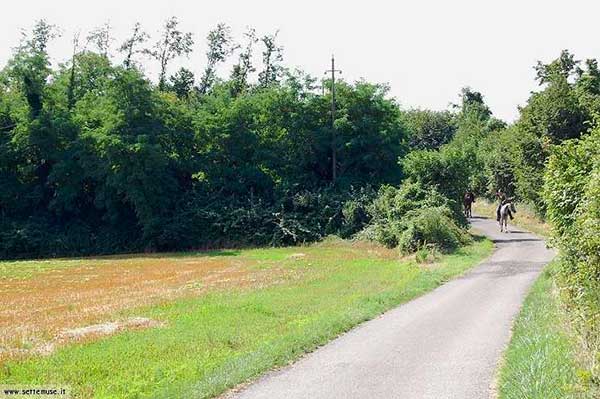 Alcuni tratti sono bordeggiati da prati e campi coltivati o maneggi.