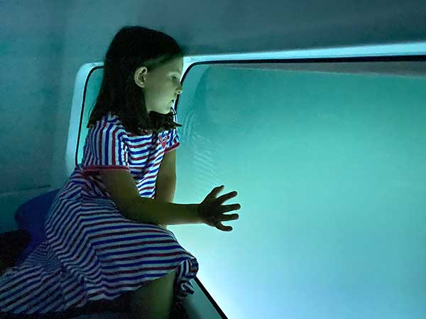 Si e no. La parte subacquea è piccola e ondeggia, però, per esempio, Giulia che soffre il mal di mare e il mal d’auto era così eccitata e attratta dal panorama subacqueo che non ha avvertito disturbi. Io che non soffro il mal di mare invece ho sentito un po’ di nausea. Comunque, per fortuna, si può sempre salire in superficie e respirare aria fresca.