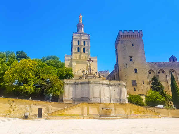 Clemente V, fu il primo papa che nel 1309 si trasferì ad Avignone per sfuggire agli sconti tra guelfi e ghibellini che si stavano verificando a Roma. I lavori furono però poi iniziati da Benedetto XII che fece radere al suolo il vecchio palazzo episcopale per crearne uno più grande (palazzo Vecchio), per poi essere proseguiti da Clemente VI che ampliò ulteriormente l’edificio (palazzo nuovo). Nel 1363 terminarono i lavori di questo monumento gotico che è tra i più grandi di tutt’Europa e che ha visto susseguirsi ben 9 papi. Ci sono più di 25 sale aperte al pubblico, tra cui gli appartamenti privati del papa, la sala Gran Tinello dove si svolgevano banchetti, la sala delle Grande Udienze, il Concistoro e la cappella Clementine in cui si svolgevano le cerimonie.