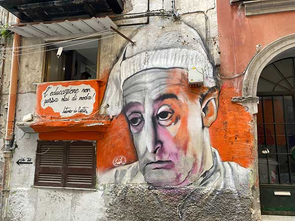 Via Portacarrese a Montecalvario è un vero museo, qui i cittadini hanno offerto i muri e numerosi artisti hanno lasciato opere dedicate a Totò e agli altri grandi artisti napoletani.