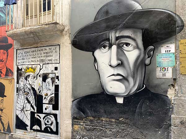 Nei quartieri Spagnoli c’è un vicolo con i murales di Totò e de Filippo