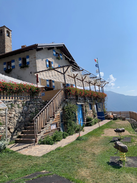 Il Rifugio San Pietro sorge in una radura circondata dal bosco affacciata sul Lago di Garda e il paese di Arco. A ridosso della struttura c’è una piccola e antica chiesetta. Mentre nella bellissima e panoramica terrazza del rifugio è possibile gustare ottimi piatti della tradizione Trentina. Immaginate di pranzare o gustare un aperitivo a un tavolo che regala una vista mozzafiato sull’Alto Garda.