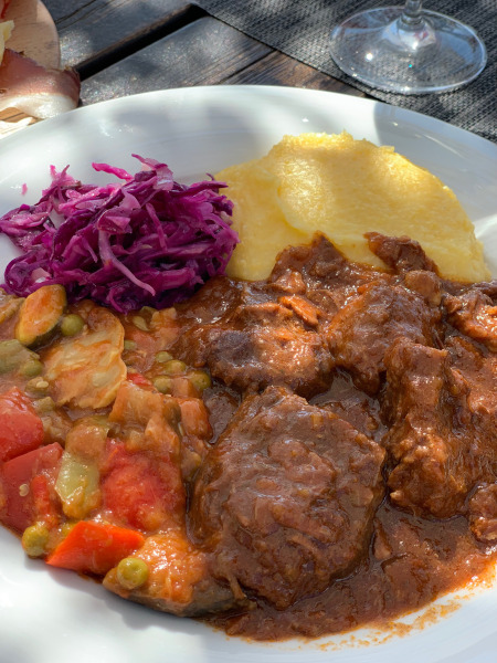 Noi dopo il lungo trekking ci siamo concessi un gustoso pranzetto a base di affettati e formaggi locali, tagliatelle al ragù e spezzatino con polenta. Non dimenticatevi il dolce e il caffè rigorosamente di moka. Attenzione però che non accettano variazioni nei piatti, neanche per i bimbi.