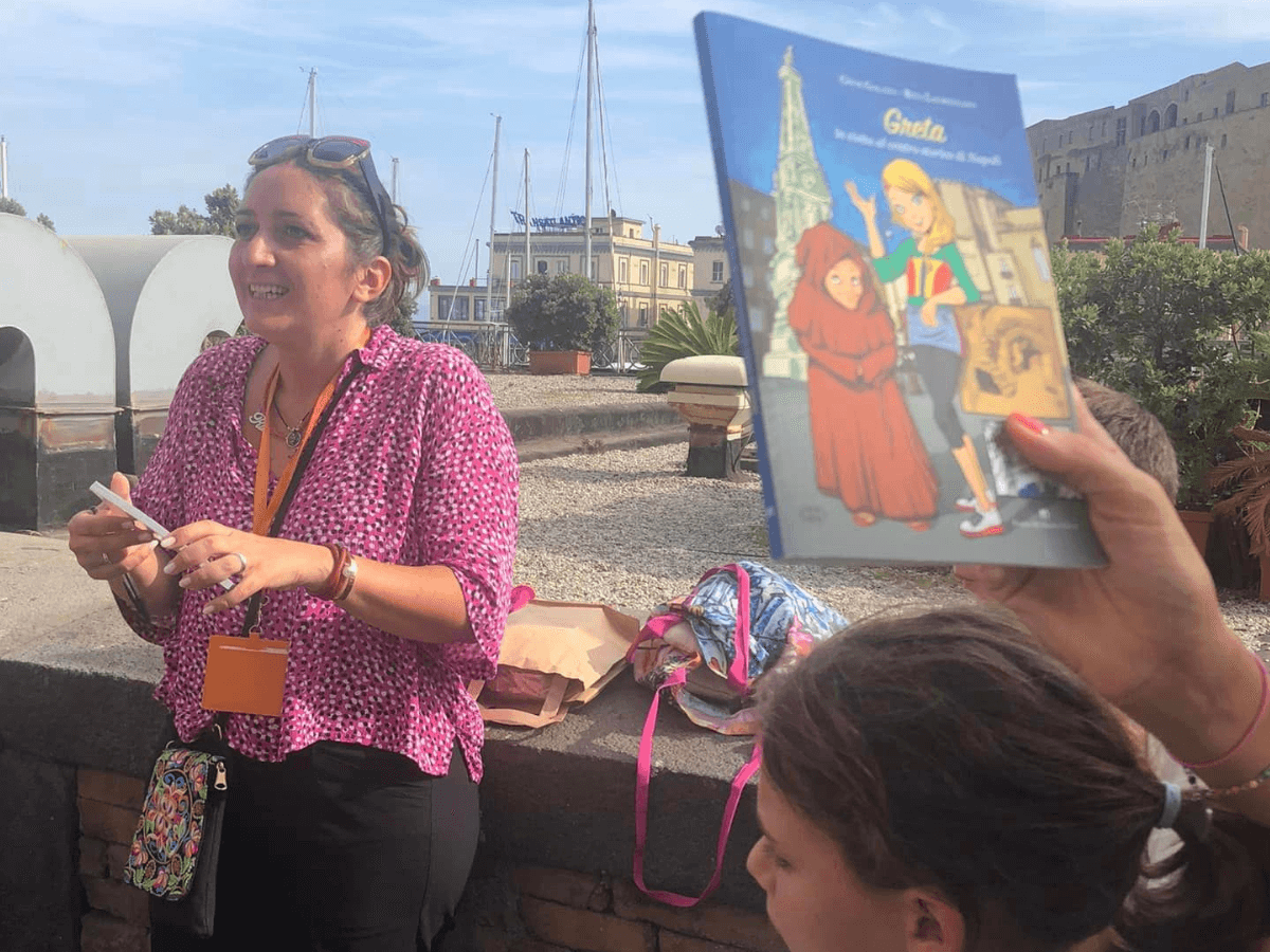 Rita organizza tantissimi tour e cacce al tesoro culturali per bambini e tra i suoi format c’è anche la caccia al tesoro in piazza Plebiscito e sul lungomare con la mappa di Viaggiapiccoli in regalo.