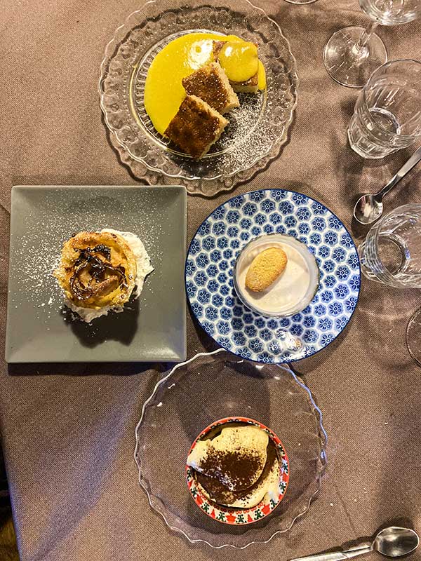 Si tratta di una cascina arredata in modo rustico con stufe a legna che scaldano l’ambiente, i piatti sono legati al territorio e tutti realizzati con prodotti a km0. Anche i vini sono del territorio e abbiamo scoperto il Ruera, un bianco della zona che non conoscevamo affatto, pur essendo piemontesi doc.