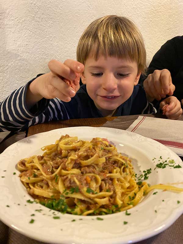Tra pappardelle al ragù, taglieri, polenta concia e con carne e verdure, oltre a panna cotta alle castagne e rose di mele e crema, ci siamo attardati a tavola tanto da dover quasi correre per arrivare in tempo alla visita guidata pomeridiana che si tiene tassativamente alle 15 e parte dalla biglietteria della Sacra.
