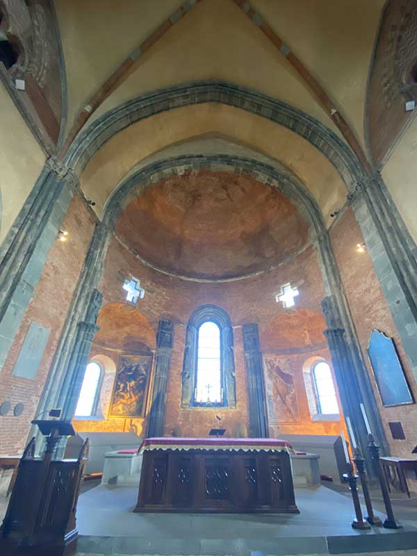 IL FASCIO DI LUCE NELLA CHIESA: Proprio la luce dentro la Chiesa è protagonista di un altro mistero in un giorno specifico dell’anno: il 29 settembre. Solo in quel giorno, il sole, sorgendo dal grande finestrone absidale, è perfettamente allineato con l’asse longitudinale della Chiesa e crea un fascio di luce che illumina la navata centrale raggiungendo il Coro Vecchio. Questo evento si verifica una volta l’anno, esattamente il giorno della festa di San Michele Arcangelo. Un vero capolavoro di ingegneria se si pensa che è stato progettato quasi 1000 anni fa.