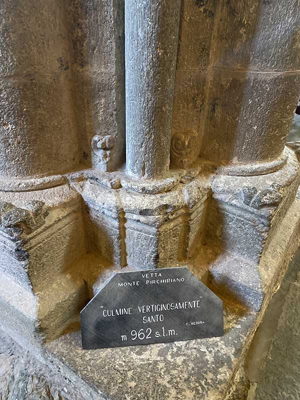 LO SCALONE DEI MORTI: una ripida scalinata di 243 gradini scavata nella roccia subito dopo l’ingresso all’abbazia. Il nome deriva dalla nicchia centrale che fino agli anni 30 custodiva gli scheletri di alcuni monaci. Si dice che i cadaveri dei monaci si trovassero anche appesi lungo la scala o giacenti su di essa a rappresentare il celebre motto: Memento mori, ricordati che devi morire.