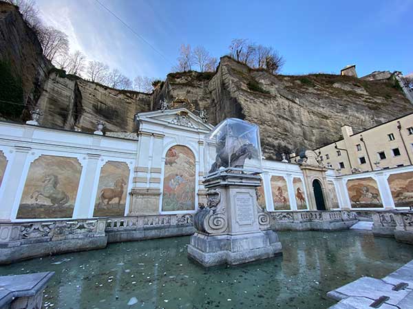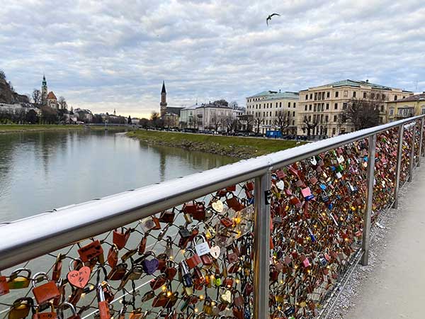 Il primo giorno a Salisburgo ci siamo concentrati sul centro storico. Nelle vostre passeggiate, passate anche dal “Ponte dell’Amore”, il Makartsteg, con migliaia di lucchetti a forma di cuore e non agganciati e dall ‘abbeveratoio monumentale  costruito nel 1695 per i cavalli delle scuderie dei principi-arcivescovi e trasformato in fontana nel 1732. (In inverno tutte le fontane sono chiuse con pannelli in legno e plexiglass).