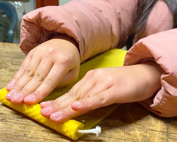 Abbiamo raggiunto Ilaria nella sua azienda, dove ha spiegato ai bambini tutto sulle api e la loro vita. Dopo aver fatto merenda tutti insieme con pane e miele i bambini hanno preso parte ad un laboratorio in cui hanno creato una candela di cera d’api. Ilaria, oltre a produrre un miele buonissimo durante l’anno organizza diverse attività per i bambini, quindi, se state organizzando una visita a San Miniato vi consiglio di passare a trovarla, anche solo per portare a casa un po’ del suo delizioso miele biologico (quello di falso indaco è il nostro preferito).
