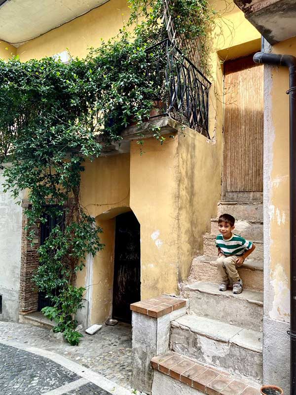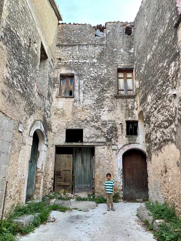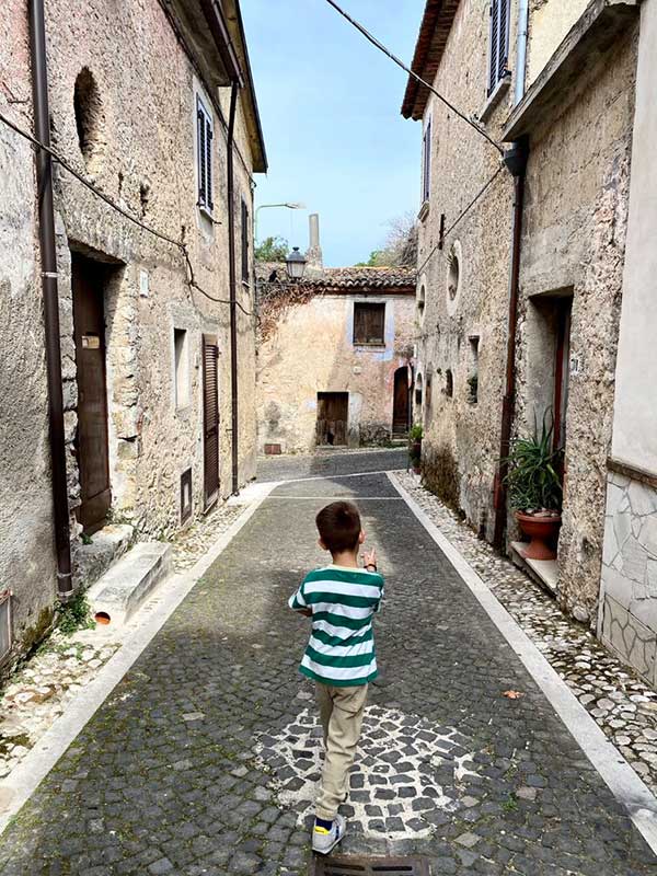 Nelle nostre uscite cerchiamo sempre di inserire la visita a qualche borgo, che sia nella nostra regione, la Campania, che ne è veramente piena, o anche in altre regioni d’Italia. Manuel chiede sempre incuriosito se in quelle case ci viva qualcuno, perché gli sembrano case abbandonate. Noi proviamo a spiegargli che a volte lo sono… ma restano li come memoria per chi verrà dopo, a volte invece ci vive ancora qualcuno, magari qualche persona anziana fortemente legata al suo paese e alla sua casa. In questi borghi aleggia sempre un’atmosfera particolare dove il tempo sembra essersi fermato e vogliamo che anche Manuel la senta e la ricordi quando diventerà grande.